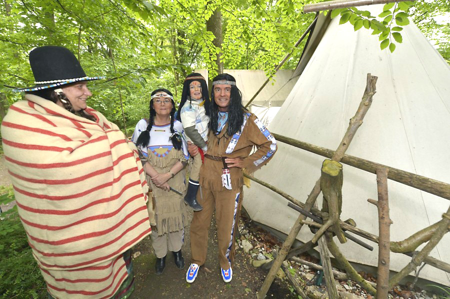 několik indiánů, děti se vozí za 2€ na koních. Jídlo a pití se platí místními falešnými dolary
