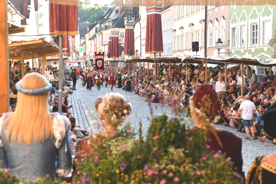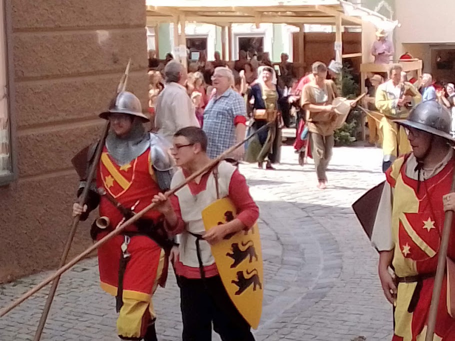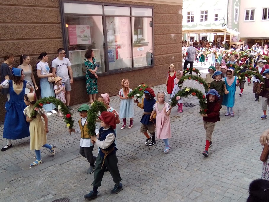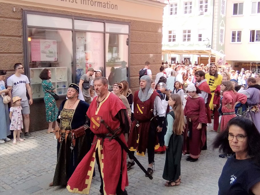Mnichova, přes Buchloe do Kaufbeuren. Je tu středověká slavnost celý týden od 13.7., ale průvod jde městem jen v neděli 14.7. od 13:30 hodin a v