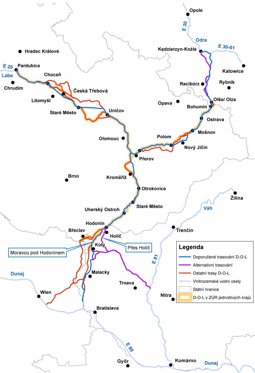 Kvůli četným zdymadlům na kanálu a na řece Moravě mezi Pardubicemi a Vídní může
