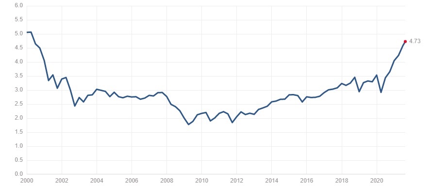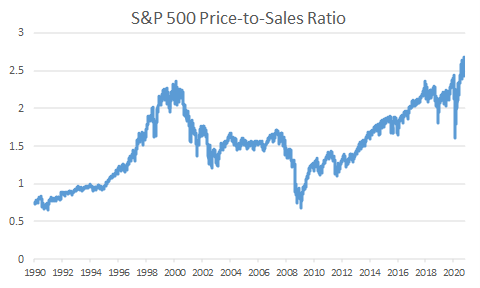 S&P 500 price to sales ratio 1990-2020