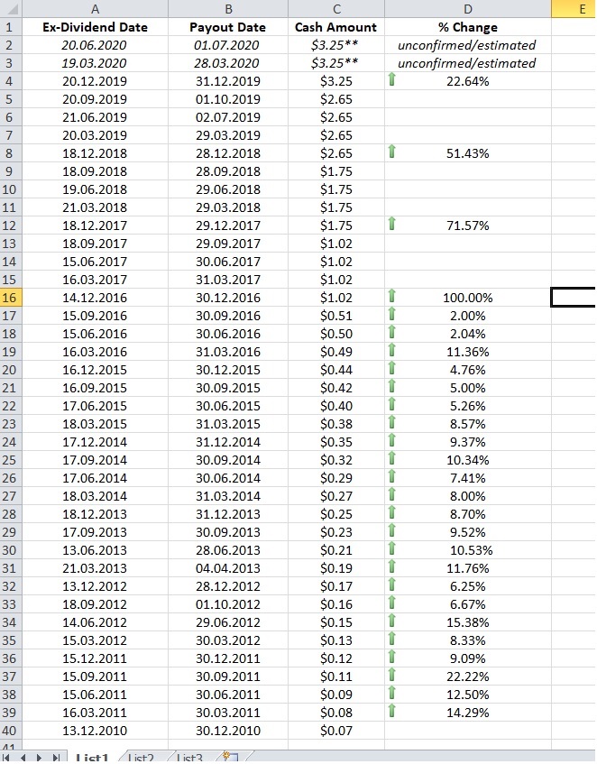 Aha, teď chápu. Ale ve zvýšení víc než 1 cent bych nedoufal. V posledním kvartálním reportu psali, že budou dividendu zvyšovat jen málo, asi budou