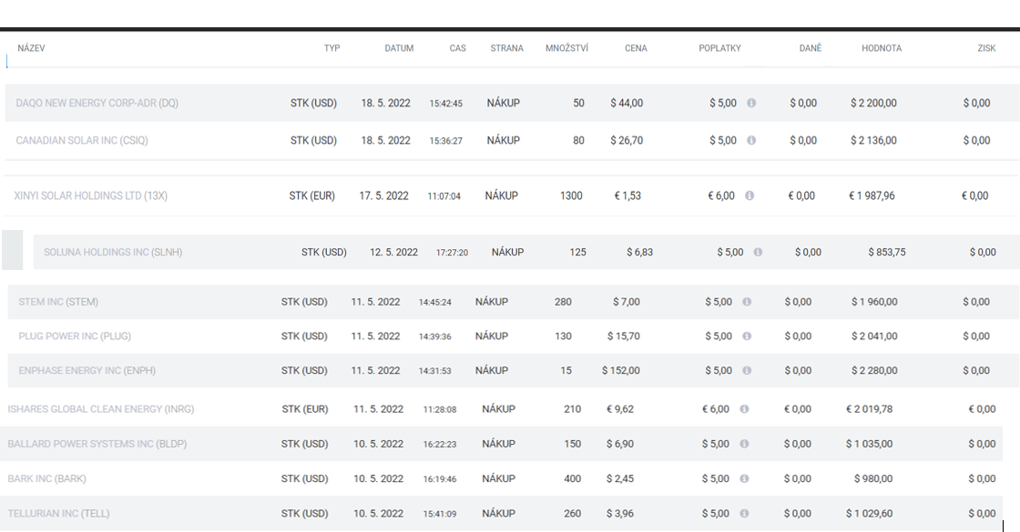 Osobně jsem v období 10.5. až 18.5. uskutečnil 11 přikoupení i uvedených akcií.