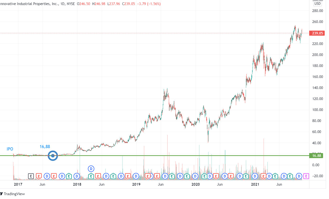 Jsem si z nudy nasimuloval příběh na reits IIPR, fiktivní vklad 4608USD před čtyřmi lety např. od 4.8.17 do dnešního dne a vyšlo mi: