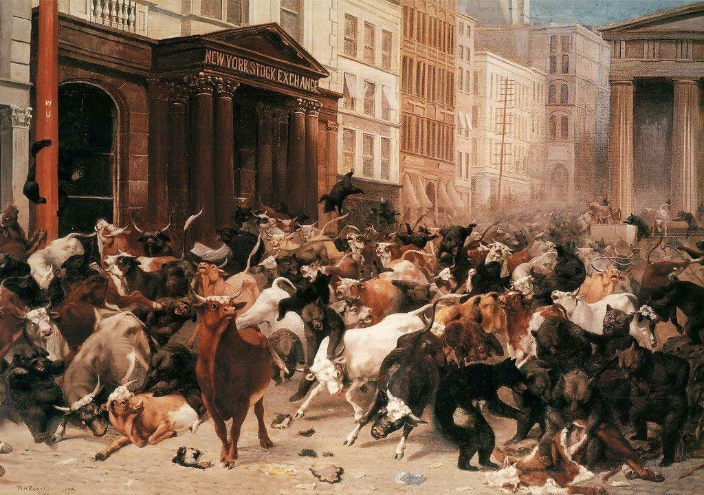 Na Wall Street zápasí tento týden býci s medvědy, jak vidíš na obou obrázcích.