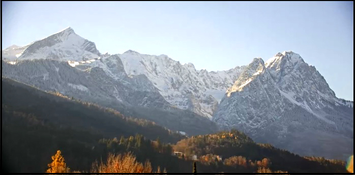 Webcam Garmisch a z ní foto 23.11.2023 = Alpspitze + Zugspitze