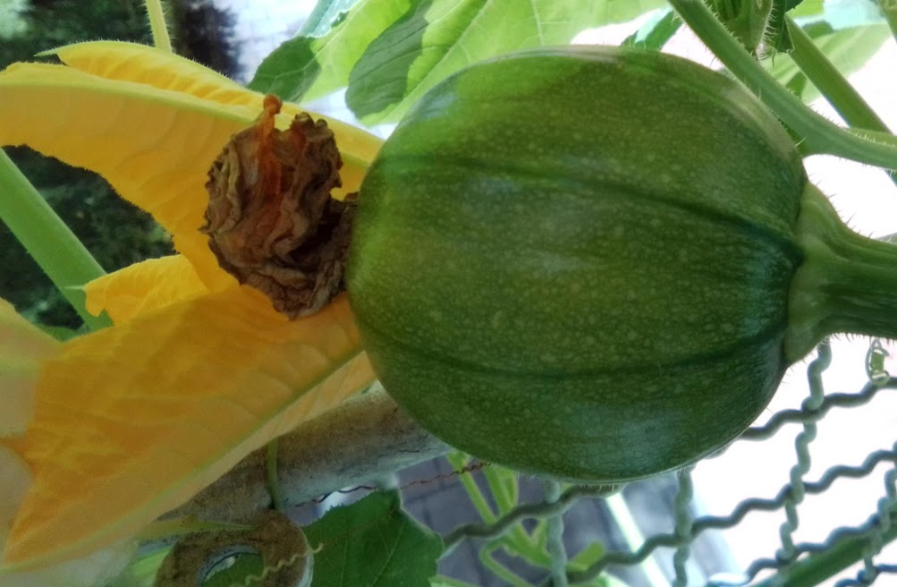 Na balkonu mi roste kulatý plod. Nevím, zda se protáhne na okurku nebo to bude meloun.