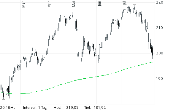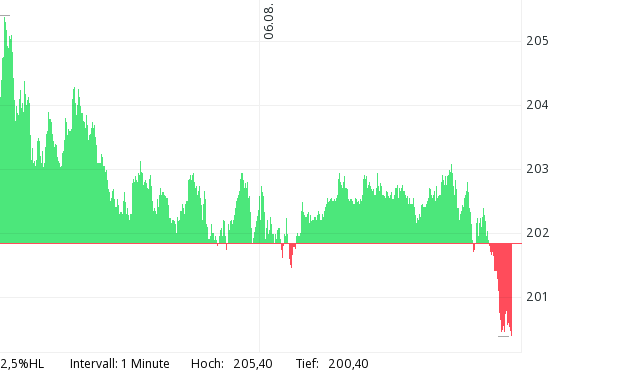 na Tradegate na 203,05 € a na Xetra na 201,80 €.