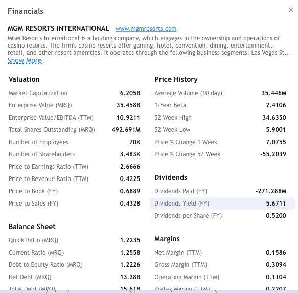 Koukám na MGM Resorts International.. Je zasažená krizí v první linii, má spoustu kasín LasVegas i svět. Když odhlédnu od neetického byznysu a podívám