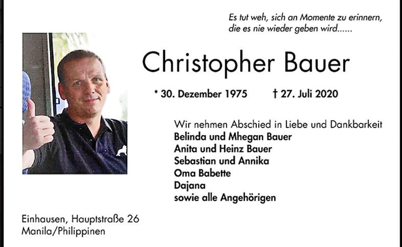 Jeden ze dvou šéfů asijské činnosti rakousko-německé firmy Wirecard = Christopher Bauer (44 let) byl prohlášen v Manile za mrtvého na otravu krve.