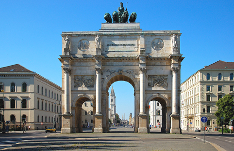 Já bydlím jen 10 minut pěšky na severozápad od tohoto Odeonsplatz. Vzadu vpravo 110 km vzdálená Zugspitze, 2999 m.