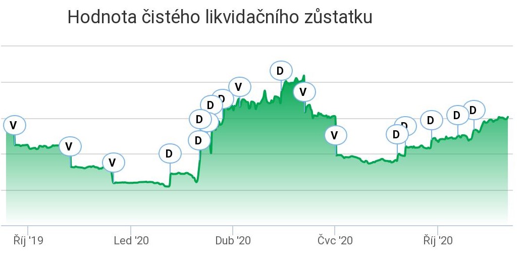 Pro doložení svého konstatování, že jsem se od podzimu zbavoval akcií a sbíral hotovost (stejně jako ABAK) dokládám graf.