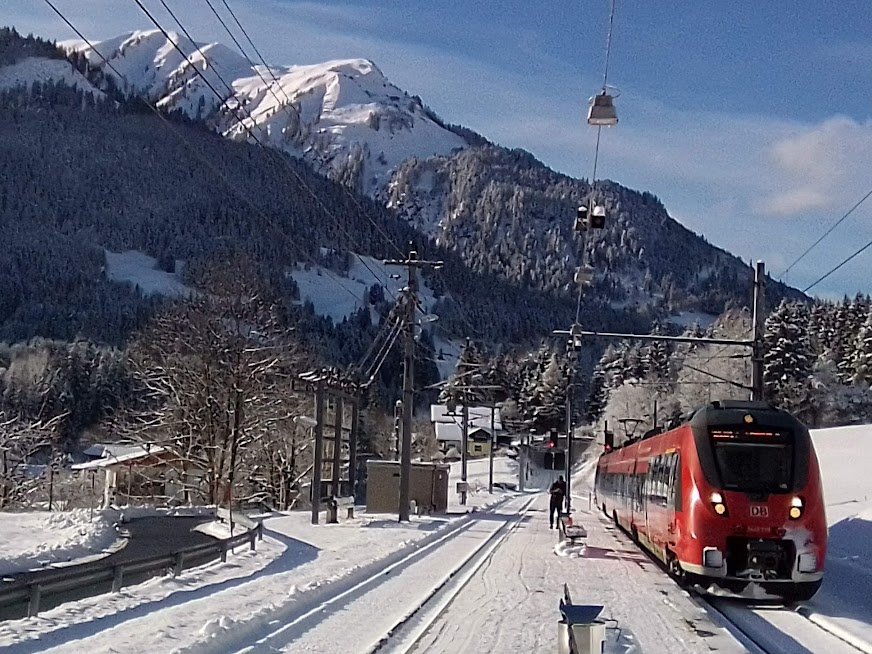 wir: München-Buchloe-Kempten-Immenstadt-Oberstdorf und der Zug endet dort. Anschließend geht es mit der österreichischen Buslinie 1 für 7,80 €