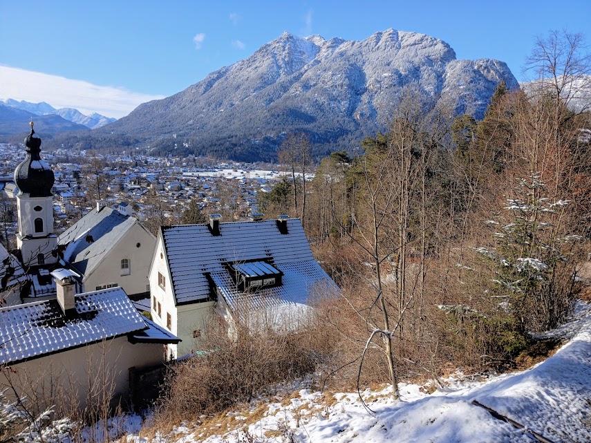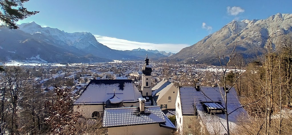 výhledové místo na východním konci Partenkirchenu, nad kostelem Sankt Anton