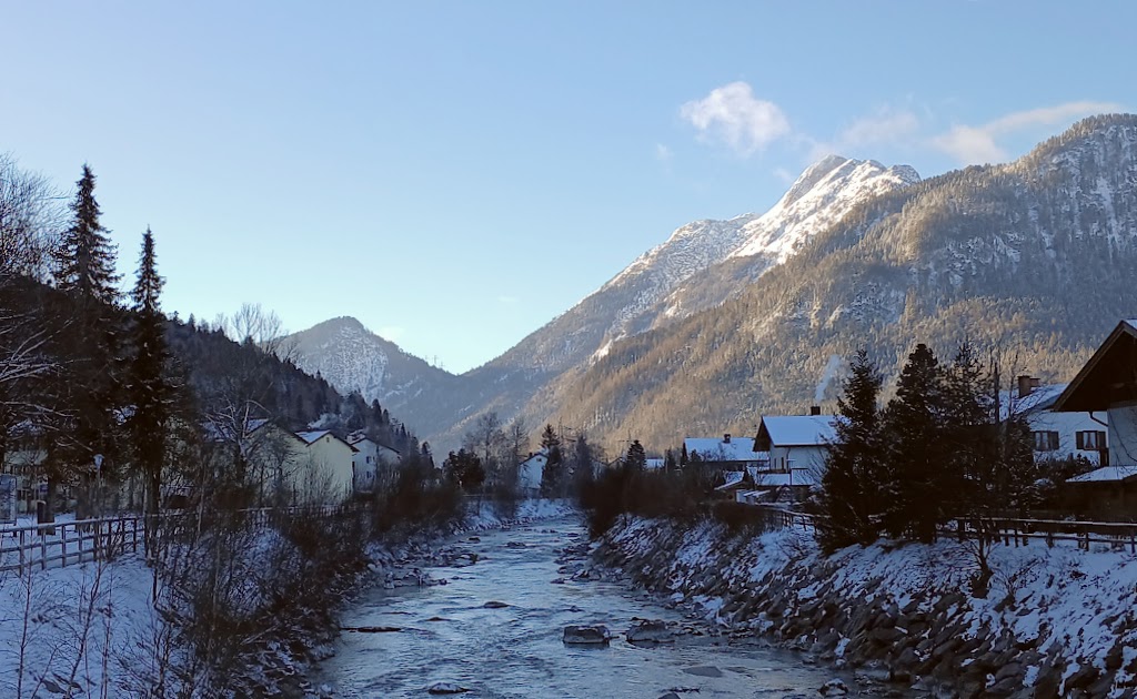 mnichovská řeka Isar přitéká z Rakouska do Mittenwaldu