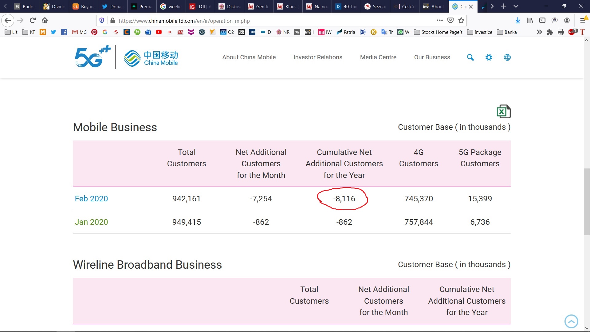 China Mobile má neobvyklou ztrátu 8 116 000 uživatelů/sim karet za leden a únor. Doufejme že to byly třeba pracovní sim karty do dual sim founů A pokles ekonomické aktivity cizinců. Snad to není dáno poklesem počtu