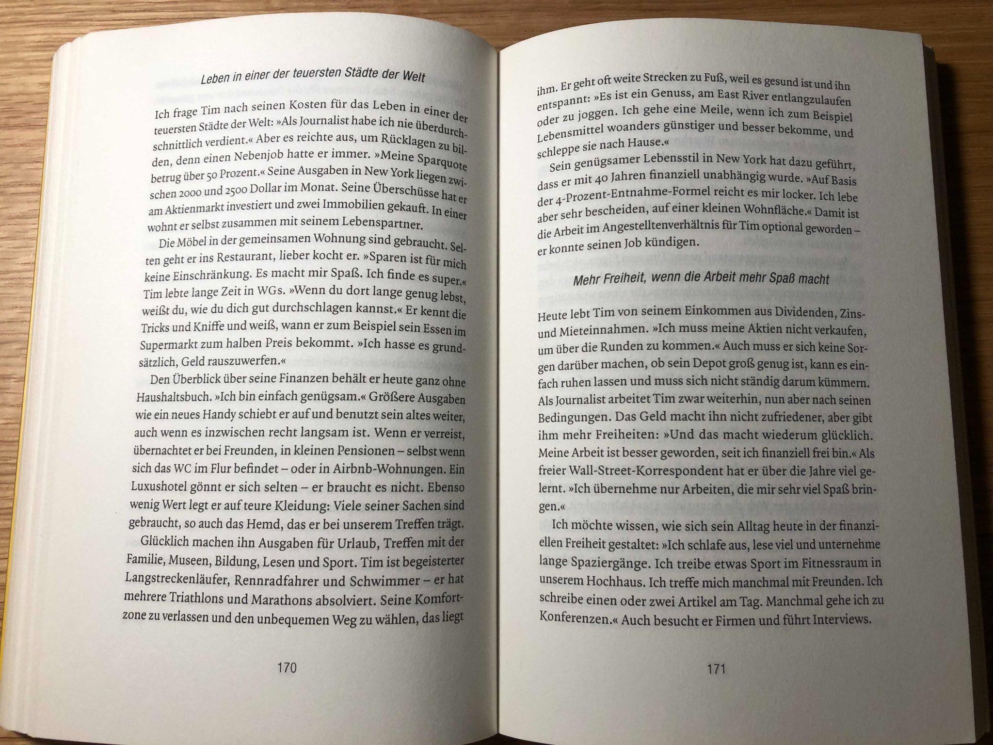 Kniha "Odchod do důchodu ve 40 letech" je velmi dobrá. Představuje také mnoho skutečných lidí, kteří to dokázali. Zde je úryvek o Timovi, který žije v
