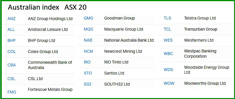 Australský štok index ASX 20 - největší akciové společnosti Austrálie.