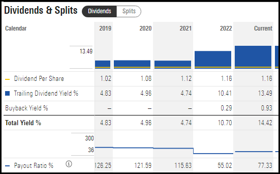 Ta akcie je dobrá na stálo jen kvůli dividendám. Prodej akcie za několik let, kvůli růstu kurzu, není vhodný.