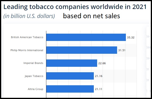 V seznamu chybí komunistická čínská firma China National Tobacco Corporation na 1. místě,