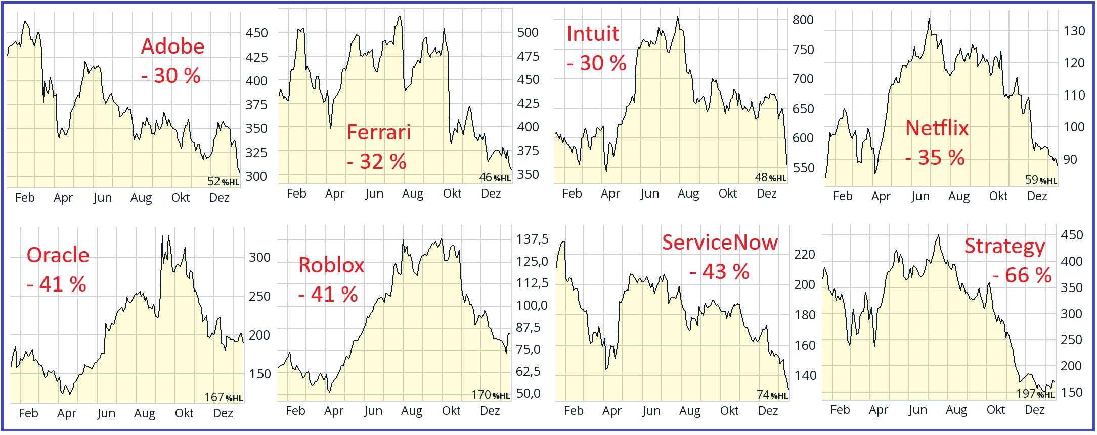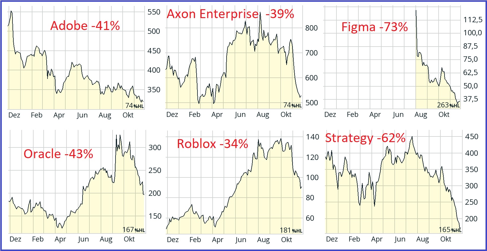 Korekce až krach drahých akcií 14.11.2025