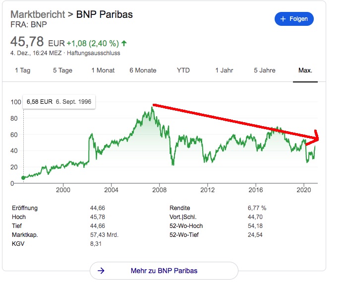 Ladislav věří, že CBA je špatná. Ale také věří, že BNP Paribas je dobrý. BNP Paribas ale letos dividendy nevyplácel. Commonwealth Bank již vyplatila dividendy. BNP Paribas od finanční krize ztrácí tržní kapitalizaci; CBA se stává cennější.