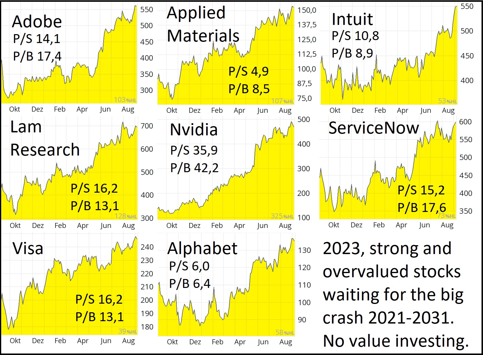 nerostou 2023. Letos hezky rostou předražené akcie, ale stále mají před sebou velký krach od 2023 do 2030, protože jejich extrémní předražení nemůže