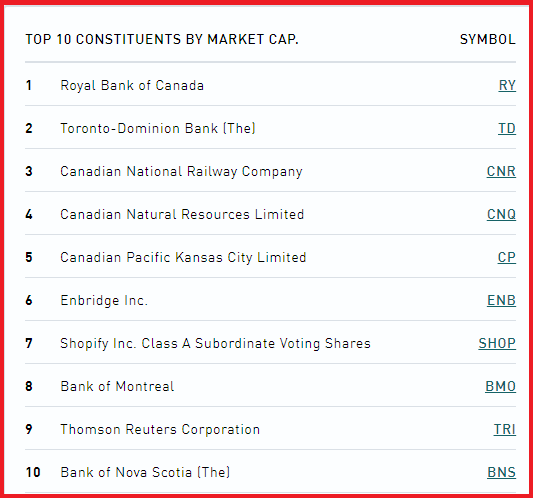Kliknout na symboly = tickery: RY, TD, BMO, BNS.