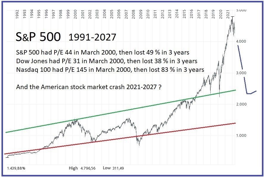 Každých 7 až 20 let vznikne takové předražení akcií, že už dále růst nemohou a pak přijde velký krach, kdy normální akcie a index klesnou na 1/2, ale